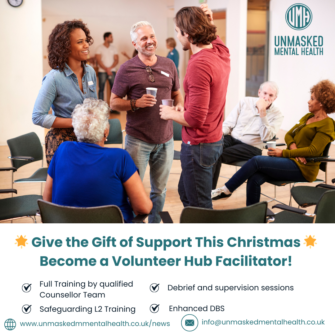 This Christmas, we’re inviting compassionate people across Calderdale to give back in a truly meaningful way. By becoming a Volunteer Facilitator with Unmasked Mental Health, you can offer the gift of connection, support, and hope